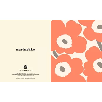 Designed by Maija Isola, the iconic Unikko print is a timeless classic loved by all. This set of twenty charming blank notecards, housed in a matching keepsake box, makes a beautiful gift or self-purchase for the discerning stationery collector. The assorted cards can be used to share messages of thanks, love, friendship, and care and are also perfectly suited for any special occasion, including weddings, showers, housewarmings, birthdays, Mother’s Day, and more. Copyright (c) 2025 by Marimekko.Design: "Unikko" by Maija Isola, 1964.