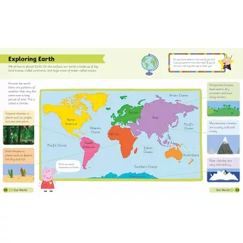 Have fun exploring topics ranging from literacy and maths to the wonders of the natural world and emotional intelligence, all clearly illustrated with familiar Peppa pictures and characters.