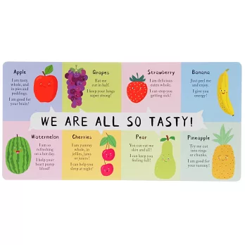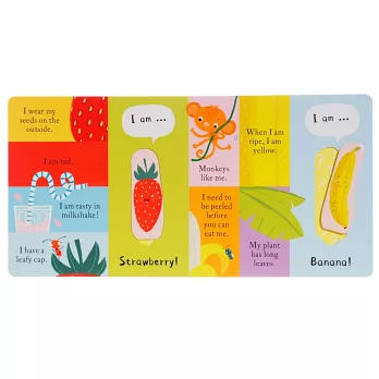 Pull out the sliding tray in the cover to reveal removeable, double-sided fruit characters. Little ones will love following the clues to match the correct board piece to each page! Do you know which fruit grows in pairs? And which can take up to 3 years to grow?