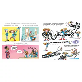米蘭達是個獨特的小女孩,她喜歡與眾不同,她不會規規矩矩地穿好衣服,在課堂上的回答也總出人意料地幽默風趣!常逗得班上同學哈哈大笑。