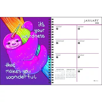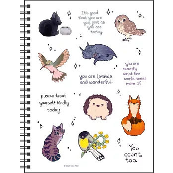 Brace yourself for a total cuteness overload! Each weekly spread in this inspirational planner features a bright, charming animal drawing, paired with a kind and empowering message of strength and encouragement. Fans of @thelatestkate will recognize and appreciate the gentle and affirming spirit that permeates all of Kate Allan’s artwork. With this planner in hand, you can fearlessly tackle all the bumps, messes, and surprise detours of 2026 with grace and aplomb. Features include:Kate Allan is an author and illustrator from Washington State. She writes and draws about painful things but aims to make it okay with bright colors and sparkles. Under the handle @thelatestkate, she has a social media following of more than 400,000 people. She is the author of You Can Do All Things, You’re Strong, Smart and You Got This, and It’s Your Weirdness That Makes You Wonderful and the creator of Thera-Pets Emotional Support Animal Cards.