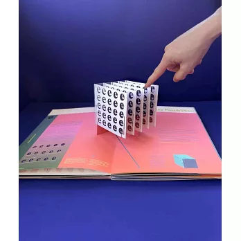 這部以英文字母與字體為主題的立體書,內含17個精巧的互動式機關,解析了形塑字體的技術和設計理念。讀者可以透過「照相排版」立體機關,藉由光影投射,體驗1960年代的迷幻字體;開啟或關閉「反鋸齒」效果,了解螢幕顯示技術對字體型態的影響;以及透過重組「Kombinations-Schrift」文字組合系統拼圖,感受模組化字體的美學。