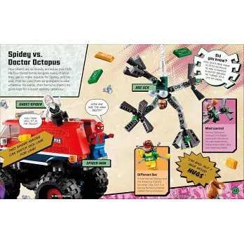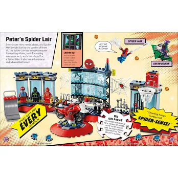 The book draws upon LEGO sets based on the Marvel Comics and films and showcases a range of fan-favorite Spider-Man characters, vehicles, and locations.