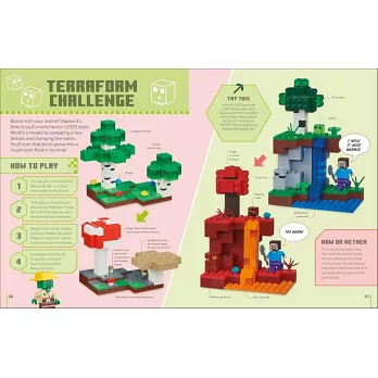 Challenge friends to a Nether minecart race. Find the odd crafting block out. Design your own LEGO Minecraft fairground. And much more!