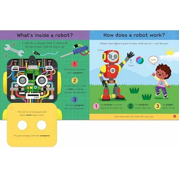 Perfect for hands on learning, little ones can move the sliders to build the robots, lift the big flap to peek inside a robot's brain . . . and much more. Featuring a wide array of robots, from squishy octo-bots, to giant exoskeletons and AI-powered space robots. All introduced by a friendly cast of robot inventors!