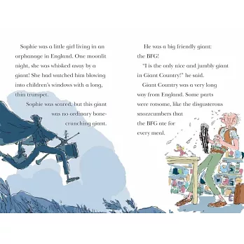 After establishing himself as a writer for adults, Roald Dahl began writing children’s stories in 1960 while living in England with his family. His first stories were written as entertainment for his own children, to whom many of his books are dedicated. Roald Dahl is now considered one of the most beloved storytellers of our time. Although he passed away in 1990, his popularity continues to increase as his fantastic novels, including James and the Giant Peach, Matilda, The BFG, and Charlie and the Chocolate Factory, delight an ever-growing legion of fans. Quentin Blake is a well-known artist whose work has made him popular on both sides of the Atlantic. He has illustrated most of Roald Dahl’s children’s books as well as many others. He lives in London, where he teaches illustration at the Royal College of Art.外文館商品版本:商品之書封,為出版社提供之樣本。實際出貨商品,以出版社所提供之現有版本為主。關於外文書裝訂、版本上的差異,請參考【外文書的小知識】。
