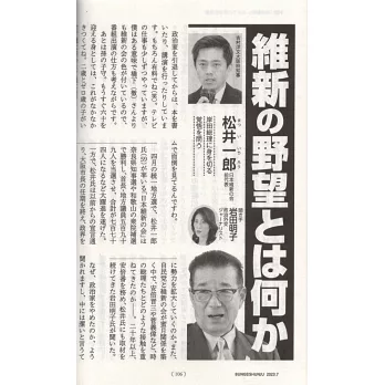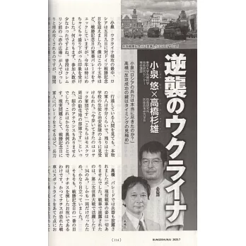 創刊於大正12年(1923)的『文藝春秋』是一部老字號、有口碑的月刊誌,在每一期厚達四百多頁分量的內容裡,包含了日本風土與海外風光等的【攝影彩頁】、阿川弘之&鹽野七生等執筆的【卷頭隨筆】、著眼於日本社會政經文藝現勢(例如不翼而飛的國民年金、昭和天皇的最新史料、少子化下的10年後、南京大屠殺的爭議...)的【專題特集】,以及山崎豐子的「命運之人」、宮城谷昌光的「三國志」、福田和也的「昭和天皇」等固定的巨匠連載單元、和坪內祐三的專欄「人聲天語」等。有意深入瞭解日本社會脈動與內幕資訊、及提升日語閱讀能力的朋友,『文藝春秋』會是每月為您更新日本現勢知識的最佳讀物。