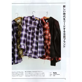 Rafu、CRTFD、HOMO LUDENS、DIESEL、KAMIYA、ANCELLM…等,介紹引領新時代的矚目品牌,也特寫它們吸引關注的話題款式,獻給想認識更多優秀設計的朋友們。