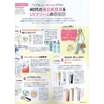 青春少女時尚誌『CUTiE』、瞄準20世代年輕女性的『mini』與『sweet』、以30世代輕熟女為對象的『InRed』……針對不同年齡層的愛美女性,日本知名出版社寶島社推出許多大受歡迎的流行雜誌,而這本『GLOW』便是40世代熟女專屬的時尚情報誌,如同其名,40世代的時髦女性魅力不容小覷,依然可以繼續閃閃發光、耀眼迷人!