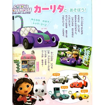 在「蓋比的娃娃屋」裡, Carlita是最可靠的貓咪。可以變身成各種交通工具的她,會帶大家到處去玩喔。