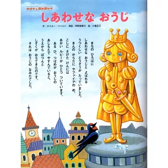 街道的廣場上有一座名為快樂王子的美麗塑像。他的全身貼滿金箔,眼睛是藍寶石,腰上的配劍鑲著紅寶石,看起來非常閃耀。但王子卻在流眼淚,為什麼呢?