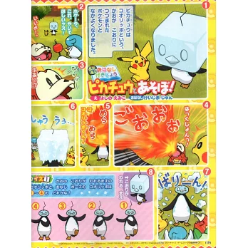 皮卡丘和冰屬性的寶可夢冰砌鵝是好朋友。平時保持冰凍頭的冰砌鵝,一旦遇熱就會變成解凍頭,但不管什麼模樣都非常可愛。