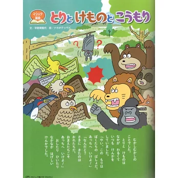 在很久很久以前,森林裡的鳥和野獸感情不好,總是在吵架。一直從旁觀察的蝙蝠,準備要選邊站了,他會怎麼做呢?