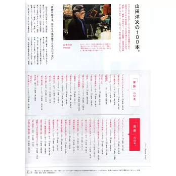 從「男人真命苦」系列、「學校」系列、「家族」到「幸福的黃手帕」…等,執導過多部電影的日本知名導演山田洋次,由他執導的最新電影「東京計程車」也在不久前正式上映,本單元分別要介紹50部有關「家族」的電影以及50部有關「喜劇」的電影。