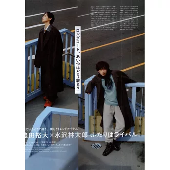 參加同一次Men`s non-no的模特兒甄選,同樣是演員的豐田裕大和水澤林太郎有不少共通點。同樣是長大衣、同樣是彩色毛衣,兩人同一主題的造型對決,令人格外好奇。
