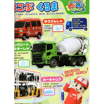 載郵件包裹的郵務車、裝水泥的水泥預拌車、載滿汽車的大型貨車、清運垃圾的色車、送貨物的宅急便貨車…等等,介紹載運物品的工作車,大家各司其職都很厲害喔。