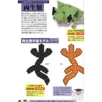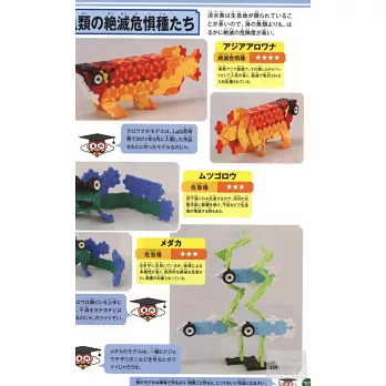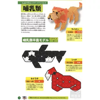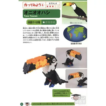 雖然市售的盒裝LaQ都附有作品的完整解說,但這些簡單的基本款作品是無法滿足好奇心很重之成長中的小孩和喜歡挑戰思考力的玩家,所以業者才會陸續推出其他作品的拼接解說,就是要讓你手中的LaQ拼圖片變成一款款立體造型的作品,本次更要教你如何拼接這些立體拼圖片,讓一些即將面臨絕種的動物能在你的手中得以重現。