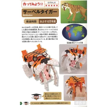 還記得冰原歷險記中的那隻老虎嗎?牠就是約10萬年前滅種的劍齒虎,牠是約300~100萬年前棲息於南北美洲大陸的貓科肉食哺乳類動物,體長約190~210公分,牠的後腿較短所以奔馳的速度較為緩慢。