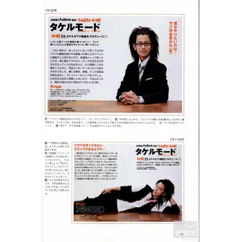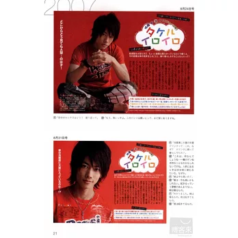 人氣第一彈!要你同時看見佐藤健的可愛與酷帥!除了收錄今回新拍攝的多張寫真集作品欣賞外,還特別蒐搜整理2007年夏季正值演出「假面騎士電王」特攝影集的佐藤健連載企劃單元主題「色彩」內頁專訪,以及2008年1月號開始至2010年春季的新連載單元「流行通信」內頁專訪大回顧。再次回顧自己剛出道時的模樣,佐藤健究竟有什麼樣的看法與想法呢?佐藤健的六年半演藝讀解大全,不容錯過。