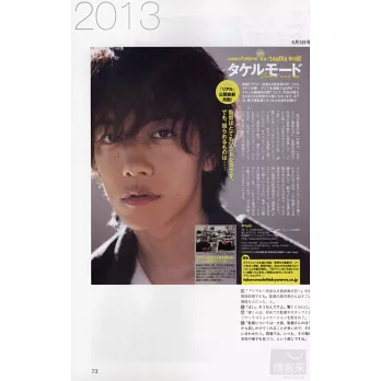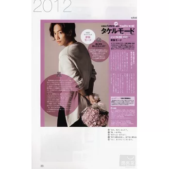 喜歡冬天。而且不是一月也非二月和十二月,而是突然在冷風拂過的瞬間,明顯感受到寒意的空氣,非常喜歡這樣的感覺。近年來活躍於偶像劇、廣告和電影的新生代男星佐藤健,從11月29日開始企劃推出連續三週發行的生活紀錄專集,本回第三彈內容精采收錄2012年1月~2013年現在刊登於TV月刊雜誌中的連載企劃單元,另附上他與箭內道彥的回顧對談專訪,一起分享他在這之間的轉變和帥氣的模樣吧。