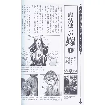 《魔法使的新娘》講述喪失求生意志的15歲少女因故被非人類的異行魔法使買下,從此成為他的徒弟更是未來的新娘,置身在這樣不可思議的身分與環境之下,少女也因而漸漸螁變成長…。對異國風俗以及神話的深度考據和細膩描寫,讓本作在2014年連載開始之後便迅速贏得了讀者的喜愛,而本書在此配合電視動畫的上檔,特別就原作漫畫內容重新進行統整,除了完整介紹作品中登場的角色和各話劇情之外,也特別針對作者精心設計的世界觀、建築物等送上完整的解析。書中甚至收錄了在正式連載之前的人物設定稿及最終未被採用而雪藏的最初分鏡草稿等貴重資料,還有連載期間中做為特典的各種彩頁圖稿、作者過往與這次專門為本書出版而接受的最新文字專訪再錄,帶您提前複習這部兼具跨種族戀情與奇幻魅力的人氣之作。