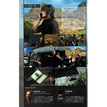 這是一本記錄了FF15從2013年正式發表到2018年完整版發售之間所有軌跡的資料集。本誌運用了相當大的篇幅回憶正傳故事與DLC 4篇的故事,以及本作設定與人物回顧。跟著這本誌走,就能夠重溫整個FF15正傳的故事情節,並且同時了解所有設定與人物。此外還加上FF15當中場面的設計原畫,FF 線上擴充包:戰友的武器資料與素材數據,還有FF15完整版中追加的新設定與道具,另外還有作曲家、製作人、聲優的專訪,所有FF15相關的內容全部濃縮在這一本公式設定資料集裡。