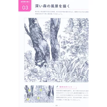 不論是插畫還是還是漫畫,都需要繪製背景圖案,這也是突顯劇中主角人物和故事內容的要素,所以本冊特別對背景的繪製技巧進行徹底的解說,完全不需要事先做草稿線圖的繪製,也不用思考街道的位置,更不需動筆或其他道具來勾勒草圖,而是以輕鬆的心情來繪製背景圖案為目的之方法,只要思考想用什麼形狀的建築物,用什麼樣的心態來看待背景,就可以很清楚知道背景的設計是需要由各種不同元素品項堆積而成的,就像文具用品內也是由黏著劑、筆、橡皮擦、迴紋針、釘書機所組合、構成的,而背景的製作繪圖,不管需不需要的品項都要做全盤的考慮與配置,例如:光線和陰影、山與瀑布、月夜與海、荒廢建築物與外牆、和室的設計等。其他還需考量自然物、人工物、效果與表現等畫法。