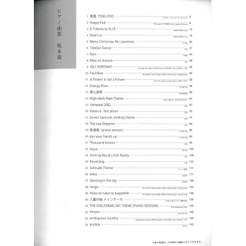 「Merry Christmas Mr.Lawrence」など、坂本龍一の代表作品をピアノ・ソロ・アレンジで収載。