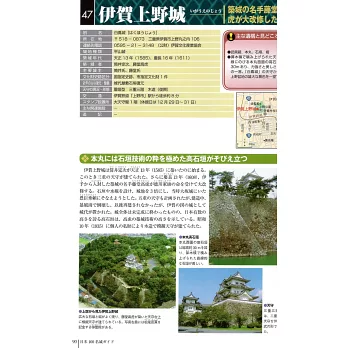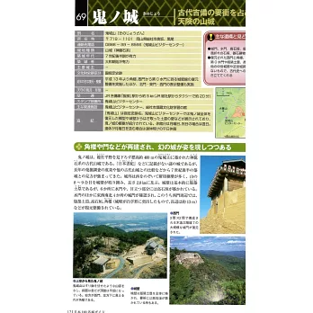 公益財團法人日本城郭協會評選「日本100名城」集結為《日本100名城公式完全解析專集:附蓋章手帳》,名城檔案皆有城堡別名、所在地、建成年代、築城者、主要城主、文化財史蹟分類、近代修復與整備狀況、天守現況與型態、交通資訊、參觀資訊、詳細地圖等檔案資訊。隨專集附贈蓋章手帳,便於紀錄攻城進度!