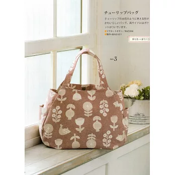 造型宛如鬱金香花朵般可愛的這一款提包,布料上也有類似鬱金香的圖案。袋身兩側都加裝了口袋,增加使用上的便利性。