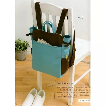 選用了二種顏色帆布來製作、袋身正面和兩側都加裝了口袋的這一款後背包,乍看比較像是一般的提袋設計。給人簡約時髦的感覺。