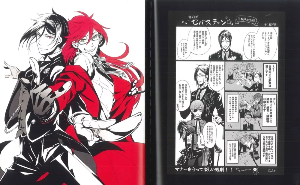 《黑執事》是由作者樞梁老師一手打造出的英倫美型執事漫畫,故事背景設定在19世紀英國維多利亞女王時期,內容主要以名門貴族「凡多姆海伍家」的家主謝爾凡多姆海伍、執事賽巴斯欽兩人為中心,講述圍繞在他們身旁狡詐的皇室鬥爭與黑暗故事。本作除了在創作上有貼近歷史讓故事更有可看性外,樞梁老師筆下創作的美型角色,也是觀看漫畫時的一大亮點。每位登場角色不論是外型或衣裝,老師都下足苦心繪製,完美詮釋出英倫貴族的氣場。如此講究細節與浪漫美學的風格令人著迷,至今依舊是許多繪師與作品的靈感啟發,可說是經典創作教科書呢!