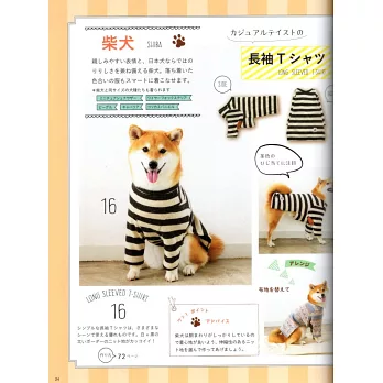 柴犬忠誠的模樣相當討人喜愛,中等的體型選擇有型的條紋布料做為製作長袖上衣的素材,整體穿著起來相當時髦有型呢!