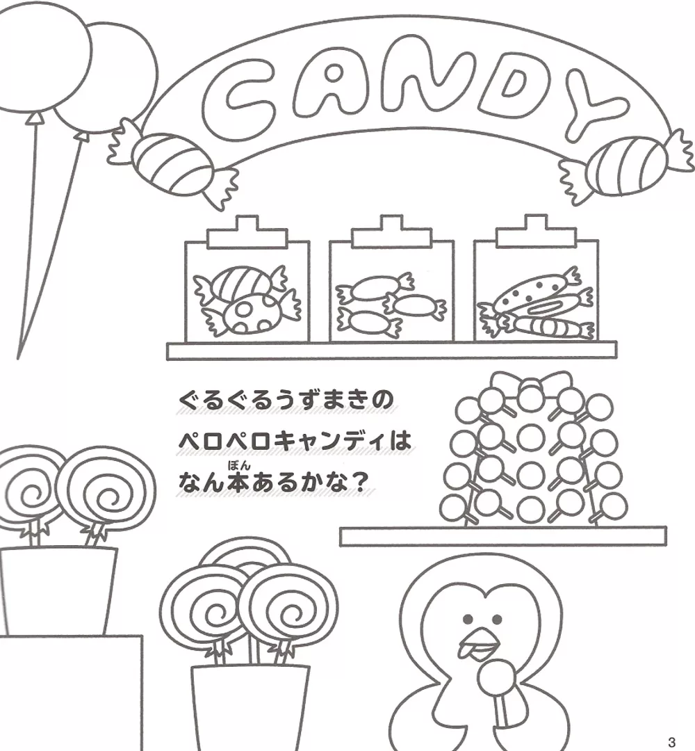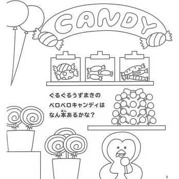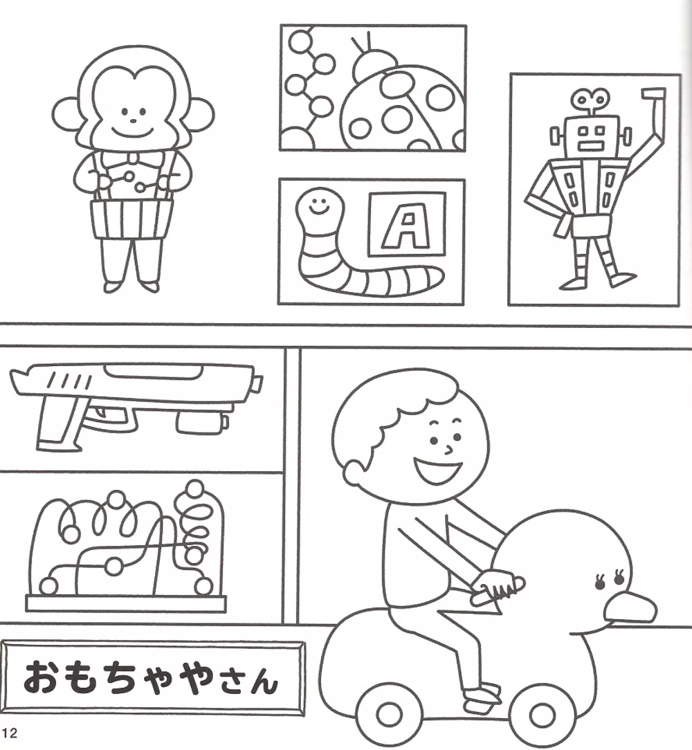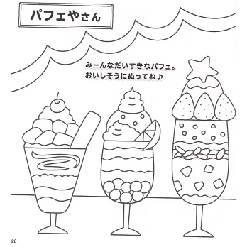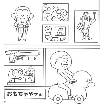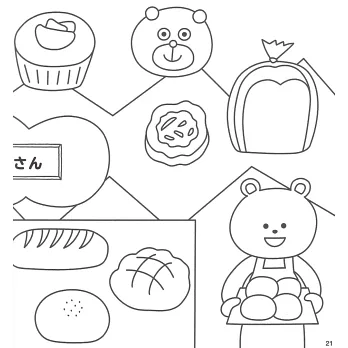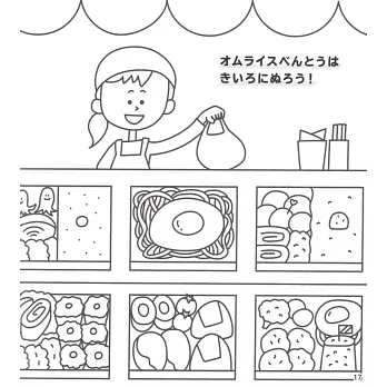 讓小朋友們喜愛的角色人物來陪伴小孩們一起遊玩,對他們學習之路非常有幫助,書內再搭配一些圖案搜尋、簡單的數學計算、指定顏色的著色彩繪等附有知、育等要素的圖案著色作品,這本是由兒童插畫作家ZERIBINZU所精心設計的趣味益智著色繪圖作品集,在培養小朋友們學習塗鴉彩繪的同時,也將表現力一起牢記在心,而給小孩們塗鴉彩繪的圖案作品更是主題靈活且豐富,就像是玩扮家家酒般的體驗店鋪陳列的樂趣,例如:色彩繽紛的糖果店鋪、銷售各種蔬菜的蔬菜店鋪、寵物店、漁獲商店、迴轉壽司店等,每間店鋪的商品色彩和設計等都可以依照小朋友的意識進行塗色設計,甚至是加上自己的創意元素等也行,就讓小孩們自己開心的發揮創意巧思去設計自己專屬的彩繪作品吧!