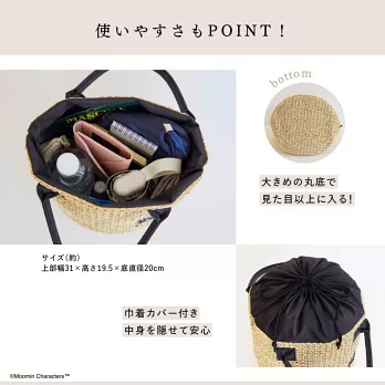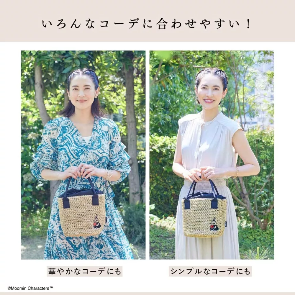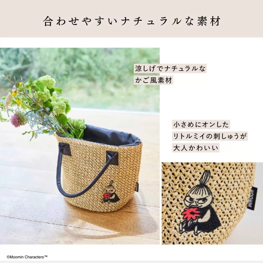 本誌「MOOMIN慕敏家族可愛單品」本次送上的是採用藤編材質製成的手提編織提袋,重量約175克,輕巧又時尚,搭配各種服飾風格或是色彩搭配都可靈活應用,可以簡約也可以華麗,相當多元化,包包底部繡有Little My的圖樣,休閒可愛,適合女性們外出手提使用,此外包包收納空間也比看起來要更大!大圓底的設計讓您方便攜帶500mL的水瓶或是長錢包等日常必需品,頂部有一個抽繩蓋,可以放心內置物品的隱密性,選擇喜愛的夏季日常穿搭來搭配這款可愛的小不點刺繡編織提袋!