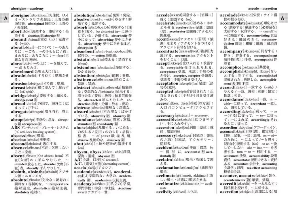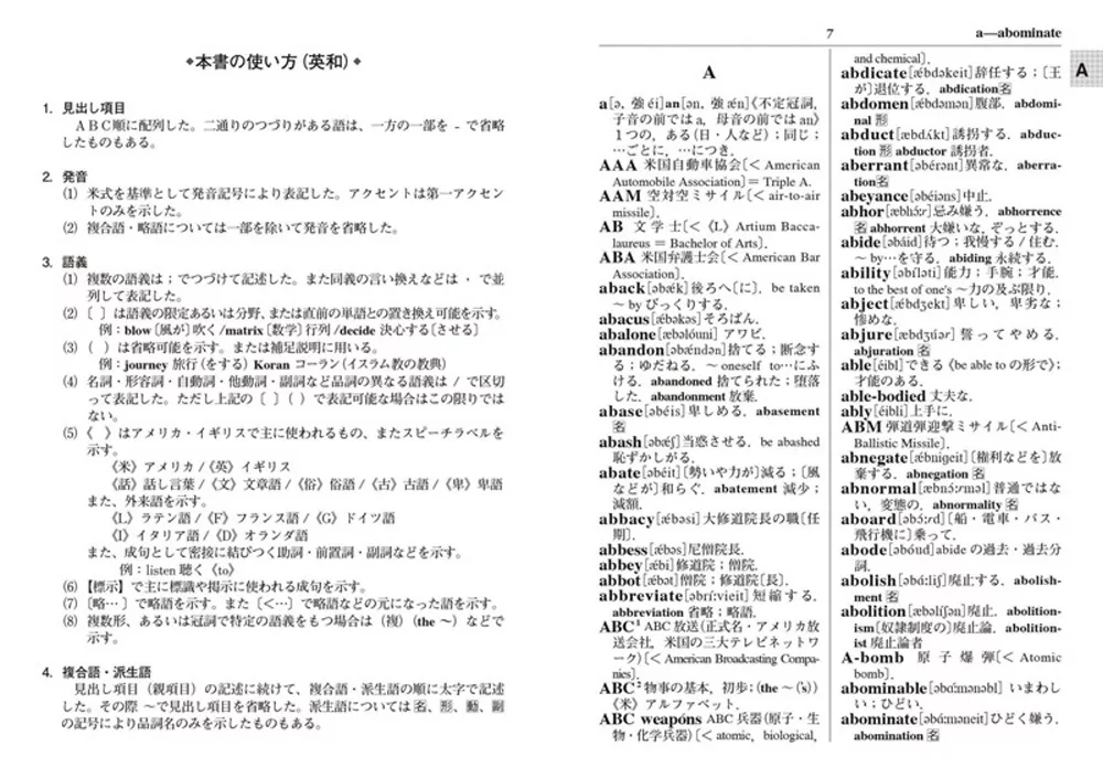 英語学習に必要な基本語、重要語や生活語彙に加え、IT関連、科学技術用語などの現代語、新語を吟味選択し、英和2万8000語、和英2万3000語と実用文例を収録。