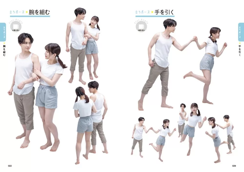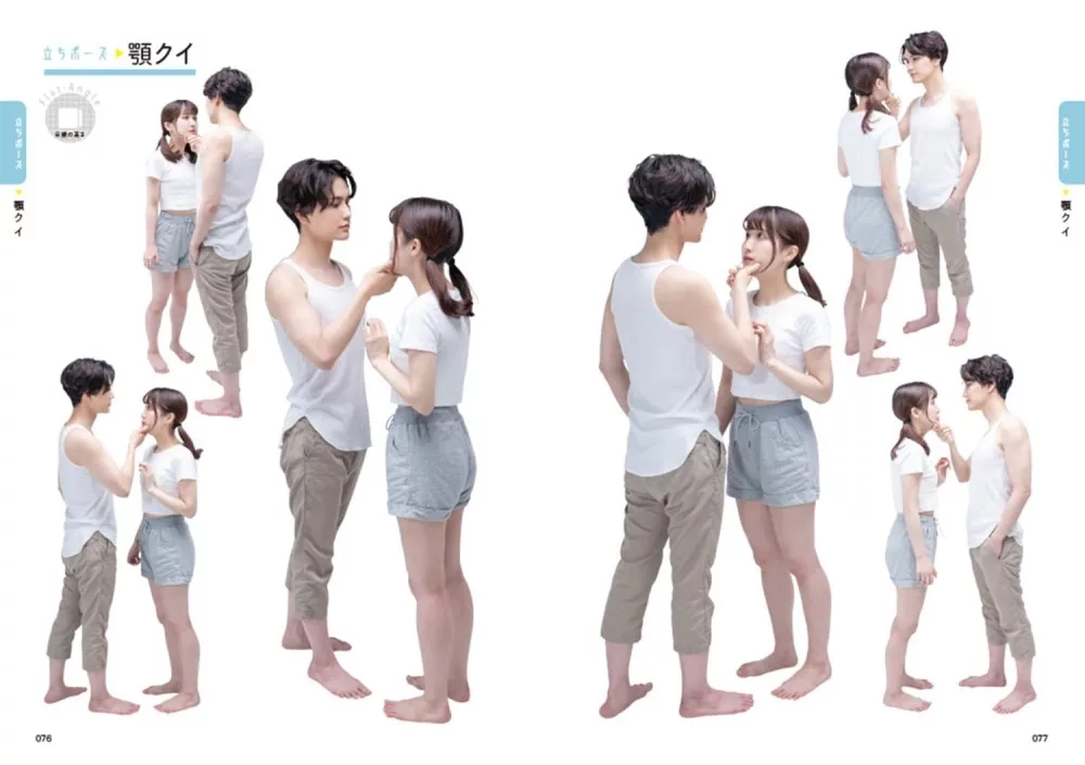 不管是影片、漫畫畫面,男女兩人之間的「關係」都會由姿勢決定,從抱臂、牽手、背騎到抱公主,親吻臉頰、下巴,再到互撐傘和互相擁抱,還有背靠背坐著或一起欣賞熟睡的臉龐的場景。《心動男女姿勢插畫描繪技巧教學講座》中包含了無數浪漫和充滿愛意的姿勢,不僅對於漫畫插圖和攝影師有用,也是情侶角色Coser的完美參考。