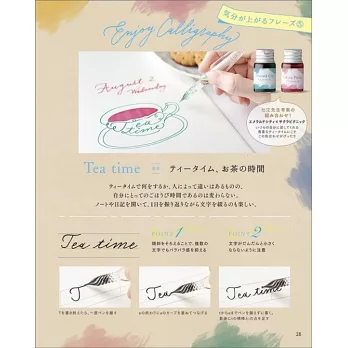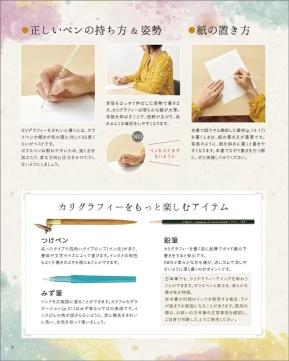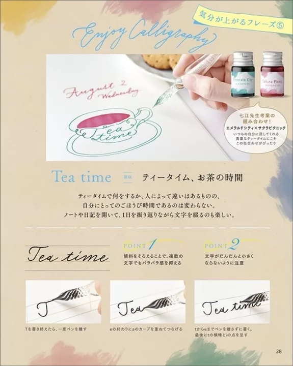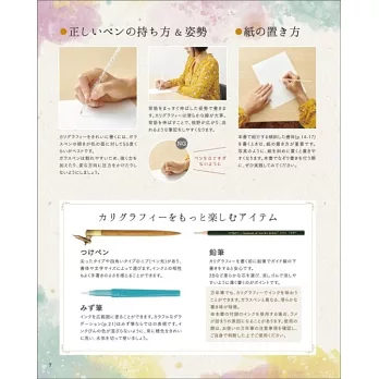 付録の6色インクを使ってモダンカリグラフィーを楽しむことできる内容になっています。