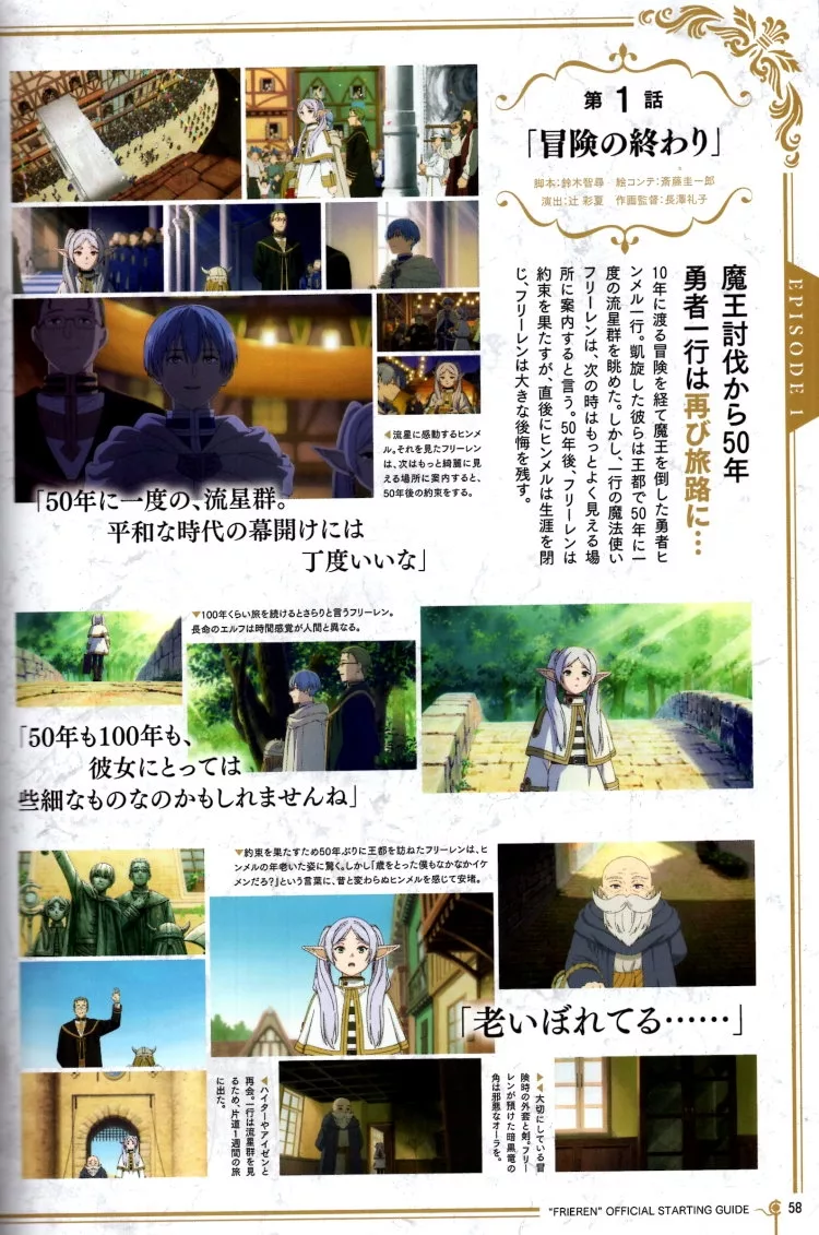 故事發生在勇者一行人打倒魔後凱旋歸來的50年後。一行人中的魔法使芙莉蓮流下了淚水,揭開了本作的序幕。一部探討生命意義的漫改電視動畫《葬送的芙莉蓮》,已經自2023年9月29日起開播且持續播出當中。這回是以最快速度,推出了電視動畫版的公式專集。