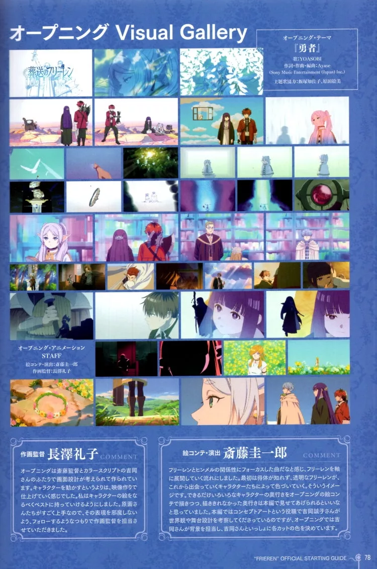 卷頭首先送上角色介紹,從基本檔案、導演和角色設計總作畫監督的解說,到主要服飾造型、表情、睡衣、修行時代、不同年齡期、兵器⋯等的設定圖,收錄多達34頁的角色設定資料。接著收錄了「種崎敦美&市之瀨加那&小林千晃」角色聲優&「齋藤圭一郎(導演)&鈴木智尋(系列構成·腳本)&長澤禮子(角色設計·總作畫監督)」之2場座談會,「種崎敦美、市之瀨加那、小林千晃、岡本信彥、東地宏樹、上田燿司、Evan Call、YOASOBI、milet」等的聲優與工作人員專訪。此外,還收錄了第1話~第5話的分集故事導覽、OP&ED的畫面剪輯附解說、美術板欣賞、第1話原創部分的分鏡圖。隨誌並附贈1枚雙面折頁海報。