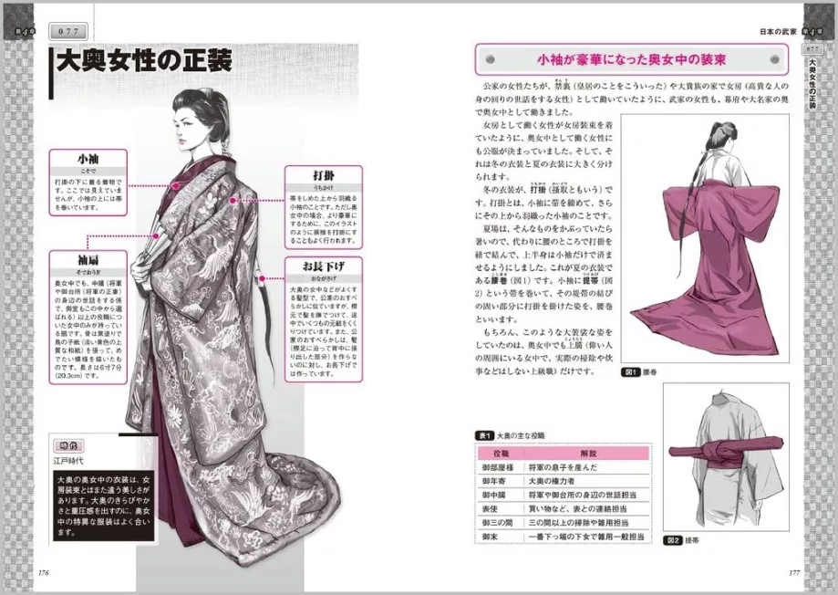 近年來在動漫遊戲大量被採用的架空奇幻世界觀,登場角色們身上的服裝穿著也是吸引目光的焦點之一。最新歐洲日本人物衣裝完全圖鑑,將近世代歐洲與和服相關知識以事典形式收錄,透過「中近世歐洲 騎士與公主的時代」、「近代歐洲 從拿破崙帝國到維多利亞時代」、「日本宮廷貴族 從平安時代到明治時代」、「日本武家  從鎌倉か到幕末時代」、「日本庶民 ― 從戰國到幕末時代」、「日本近代 從大正到戰前時代」;共六大章節,完整說明用於奇幻風格創作,各種身份地位角色的服裝、髮型、配件等,另外還有劇本設定和角色設計可用的服裝也要一併介紹。