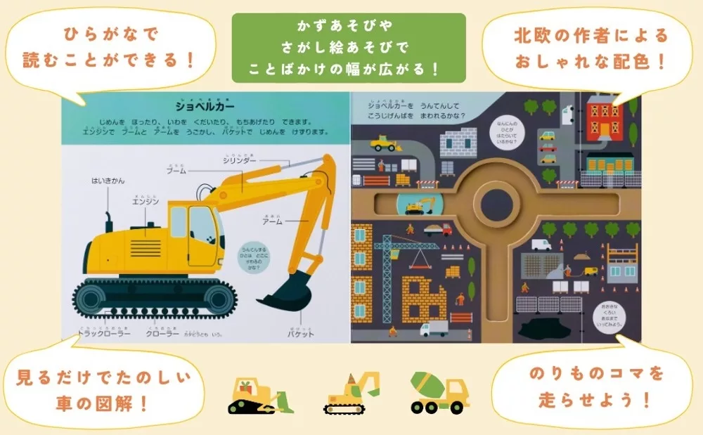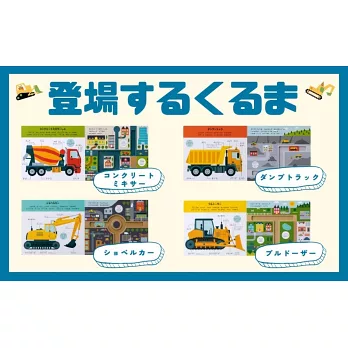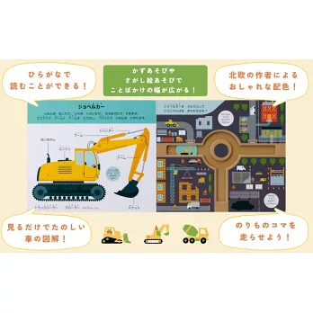 平日常見於工事現場的工程車輛,因為它們體積都過於龐大,所以都會以卡車搭載它們後再行駛於道路上,要欣賞到這些大型工程車運轉的模樣,除非是專業人員否則一般人很難見到,因此,為了滿足大家的好奇心,本次特別設計了一些機關,只要讀者們轉動這些工程車上面的按鈕,就可以讓這些原本只能在工事現場工作的工程車輛動起來,而這些工程車輛都是小朋友們喜歡的種類,例如:水泥混凝土攪拌車、搬運卡車、挖土機、推土機等,趕快讓自己化身變成這些工程車輛的駕駛員來駕駛、啟動這些車輛吧!這是一本含有圖鑑要素、專有名詞、數目遊戲等項目的益智趣味繪本,千萬別錯過了!