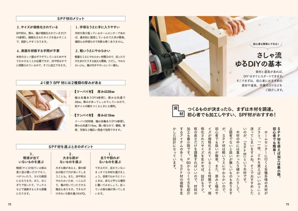 ゆるDIYは、お金をかけずにわが家を好きになる魔法です。昭和な賃貸一軒家を原状回復可能なDIYで自分好みの空間に変えている著者(Instagram;@sacha_sng_laboratory)の簡単、時短、ローコストなDIYの方法を紹介。プランタースタンド、2WAYテーブル、ボックス収納、引き出し付き収納、収納付きベンチ、壁掛けシェルフ、物干しスタンドなど、初心者でも作れるオシャレでかわいい家具のレシピ付き!