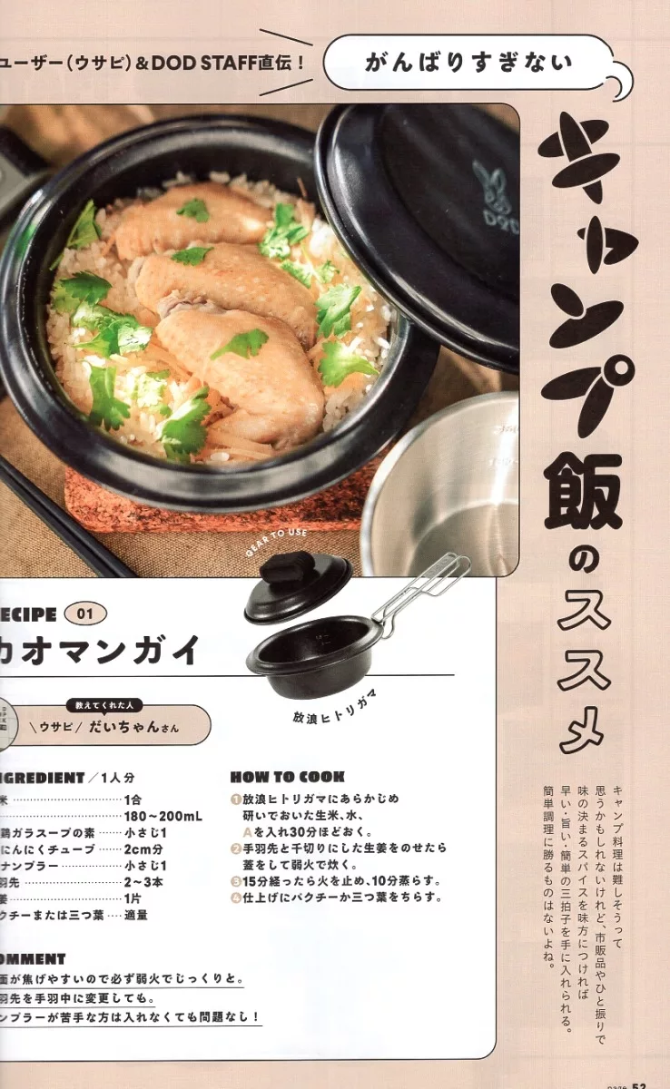 一直深受大家歡迎的人氣品牌DOD推出《DOD USAGI YEAR紀念特刊》,特刊中滿滿64頁豐富內容,包括完全由DOD監管的露營手冊、第一份公司報告以及熱門產品排名。隨刊附上的獨家商品是一款背提袋,看起來像是人氣商品「トートハコナール」的縮小版,精緻可愛,且附有可調節的肩帶,不僅可以在戶外使用,也可以日常使用。