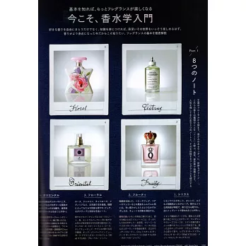 經典的花香調、溫和的木質調以及清爽的草本調…等,香水基本上可以分成八大香調,本單元除了要收錄香水的基礎知識之外,還要為大家介紹世界知名調香師以及他們的經典作品。