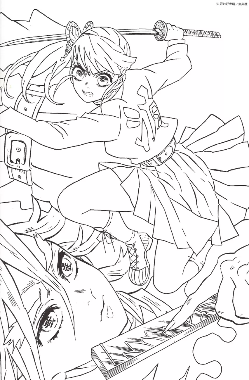 將吾峠呼世晴原著畫作的插圖變成本次要進行著色的塗繪作品,共36款,可讓粉絲迷們感受到不一樣的鬼滅之刃魅力世界與著色繪圖的樂趣,此次的作品皆以原著作品的插畫重現,所以不論是小孩還是大人皆能享受鬼滅之刃的著色氛圍。竈門炭治郎、不死川實彌(鬼殺隊風柱,風之呼吸的使用者)、伊黒小芭内(鬼殺隊蛇柱,蛇之呼吸的使用者)、柱稽古與無限域的爭鬥插圖等也會一起收集在誌內,從第9頁開始就會加上騎縫線,所以讀者們在著色完成後便能自由取下與同好分享,或是裱框裝飾在屋內都可以,而封面的背面也設計了有能夠著色的插圖作品,為「特製的海報」式樣,此外,本誌為了讓讀者們容易著色而做了容易開合(柔軟性)與耐久性的設計。
