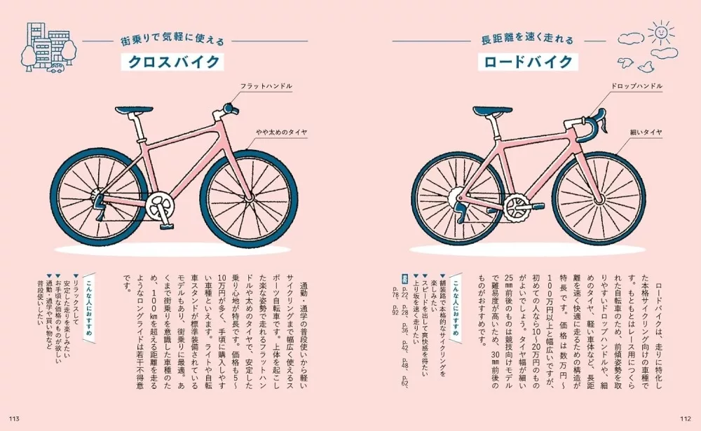 PART2では、専門家監修のもと、スポーツ自転車の構造や種類、保管やメンテナンス、安全な走行に改めて知りたい交通ルールを掲載。前傾姿勢でスピードも出るスポーツ自転車ならではの乗り方や、自分に合う1台の選び方もわかります。また、目的別・季節別のコーディネートや必須アイテムもご提案。