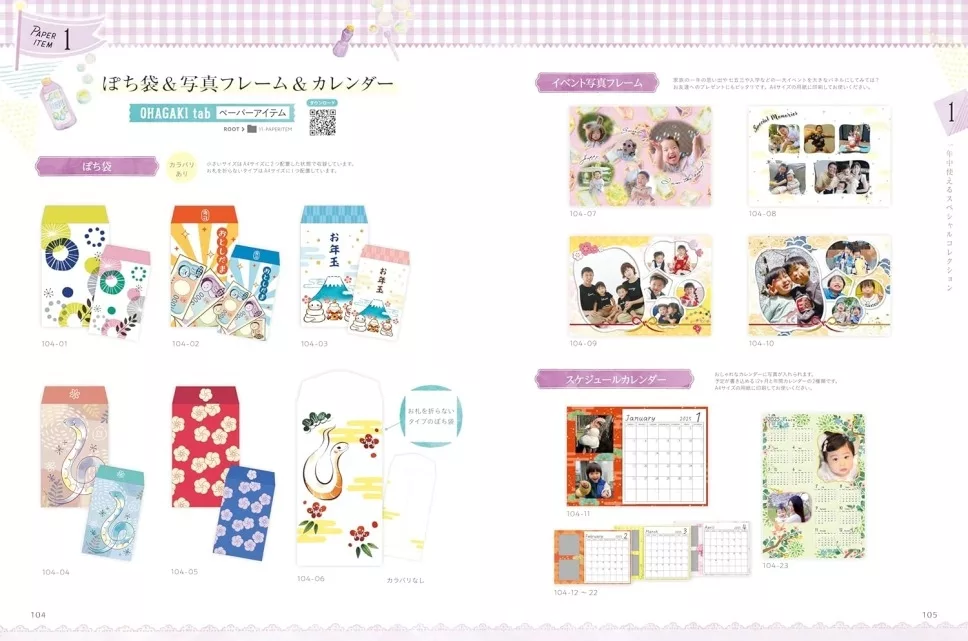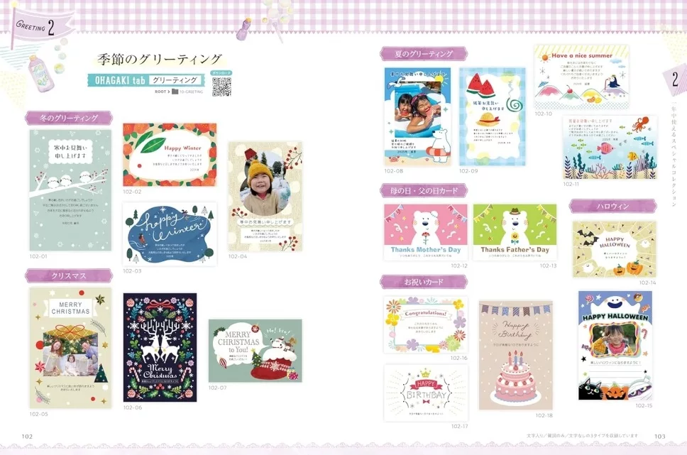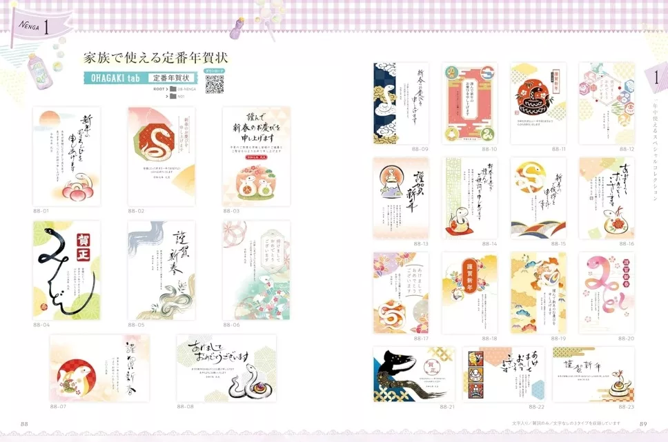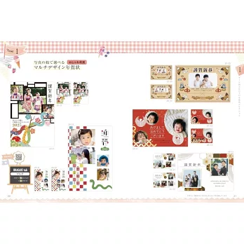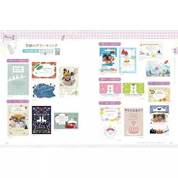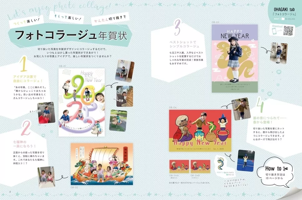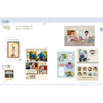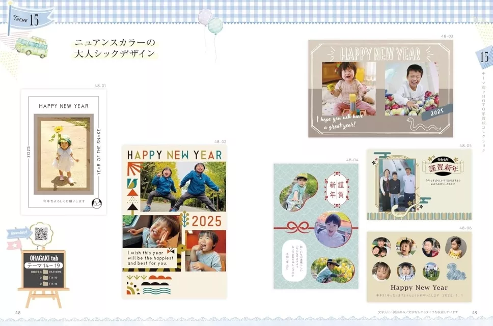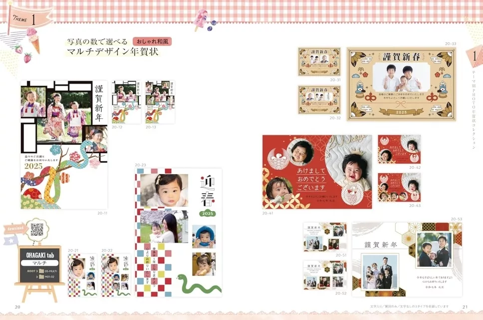 テーマ別のデザインで家族みんなの年賀状をこの1冊で作れます!