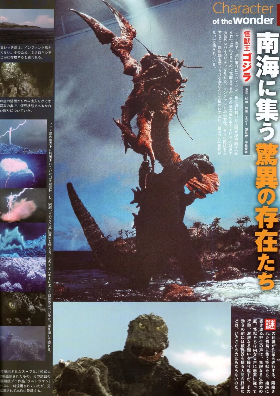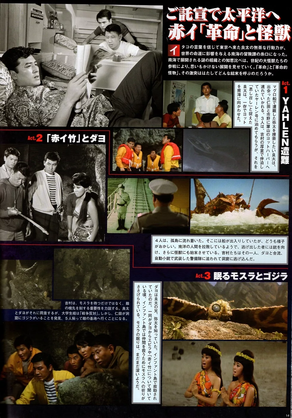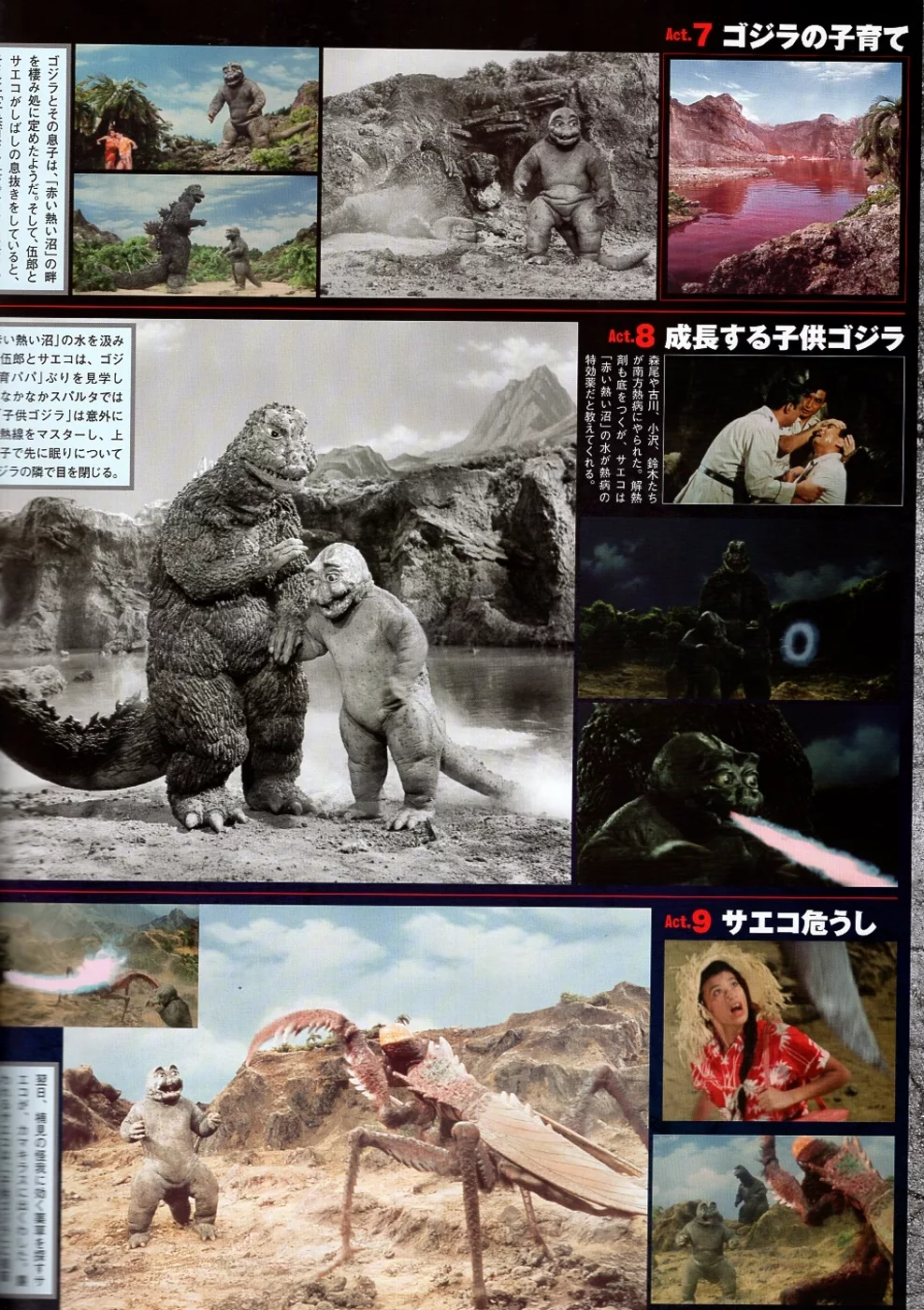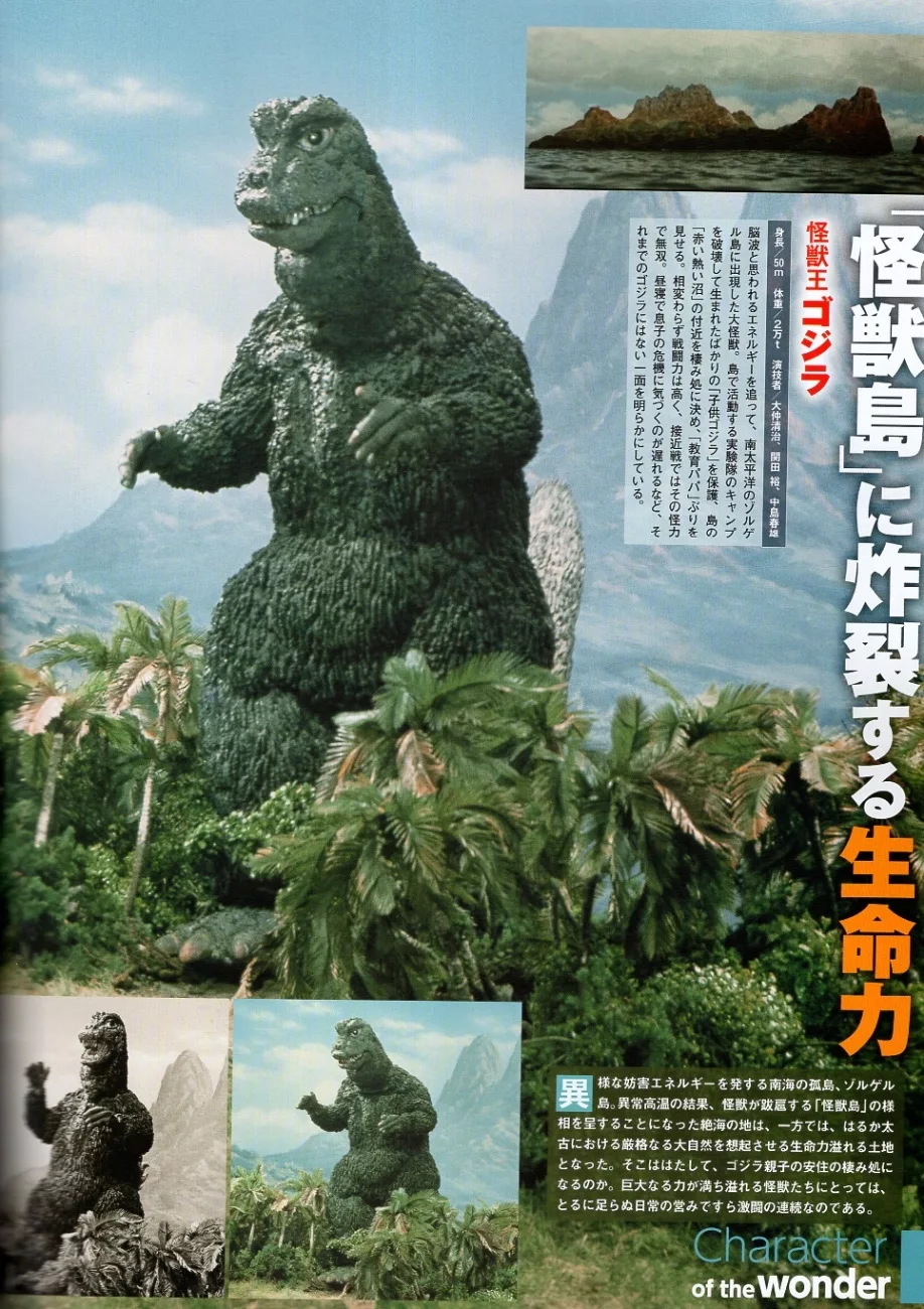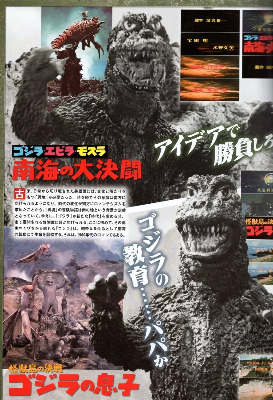 直到此時,第一次擺脫了當初何以誕生窠臼的「哥吉拉」,終於能夠作為一種純粹的生命,在南海的孤島上唱出生命的謳歌。而這也正是屬於1960年代的浪漫情懷。本期所要介紹的二部作品,分別是1966年12月上映的《南海怪獸大決鬥(哥吉拉·伊比拉·魔斯拉 南海大決鬥)》,以及1967年12月上映的《怪獸島決戰 哥吉拉之子》。