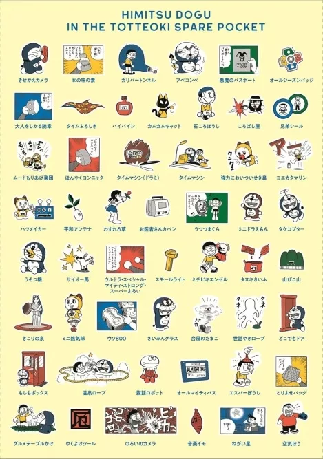 四次元ポケット型の特製ジッパー袋に入った「ひみつ道具」フレークホロシールつき
